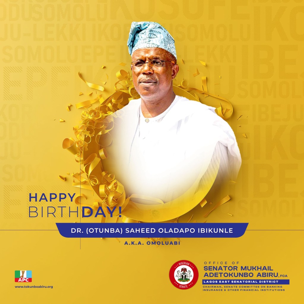 It is with immense joy and genuine admiration that I and my lovely wife, Feyisola extend warm congratulations to (Otunba) Saheed Oladapo Ibikunle, P.hd (Omoluabi), on the occasion of his birthday.