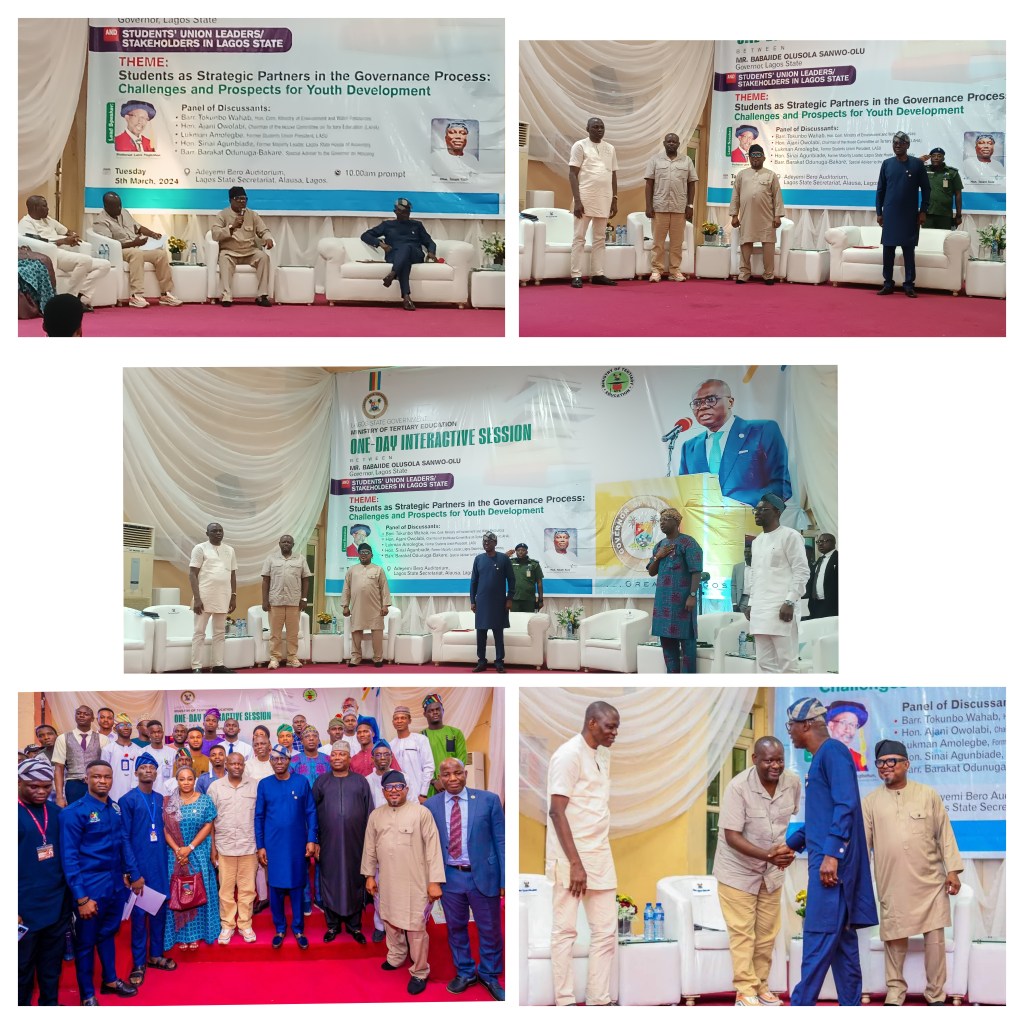 Hon. Sanai O. Agunbiade, Former Majority Leader of the Lagos State House of Assembly, participated as one of the panelists in a one-day interactive session between Governor Sanwo-Olu and student union leaders/Stakeholders in Lagos State on the 6th of March. The session aimed to foster dialogue and understanding between the government and the student community.