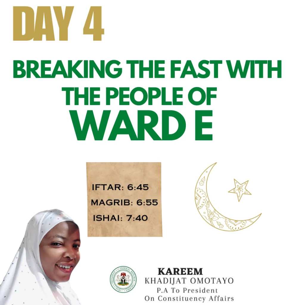 Alhaja Khadijat Kareem Omotayo, the Personal Assistant to President Tinubu on Political Affairs, recently broke fast, also known as Iftar, with the Muslim community of Ward E and E1 in Surulere Local Government.