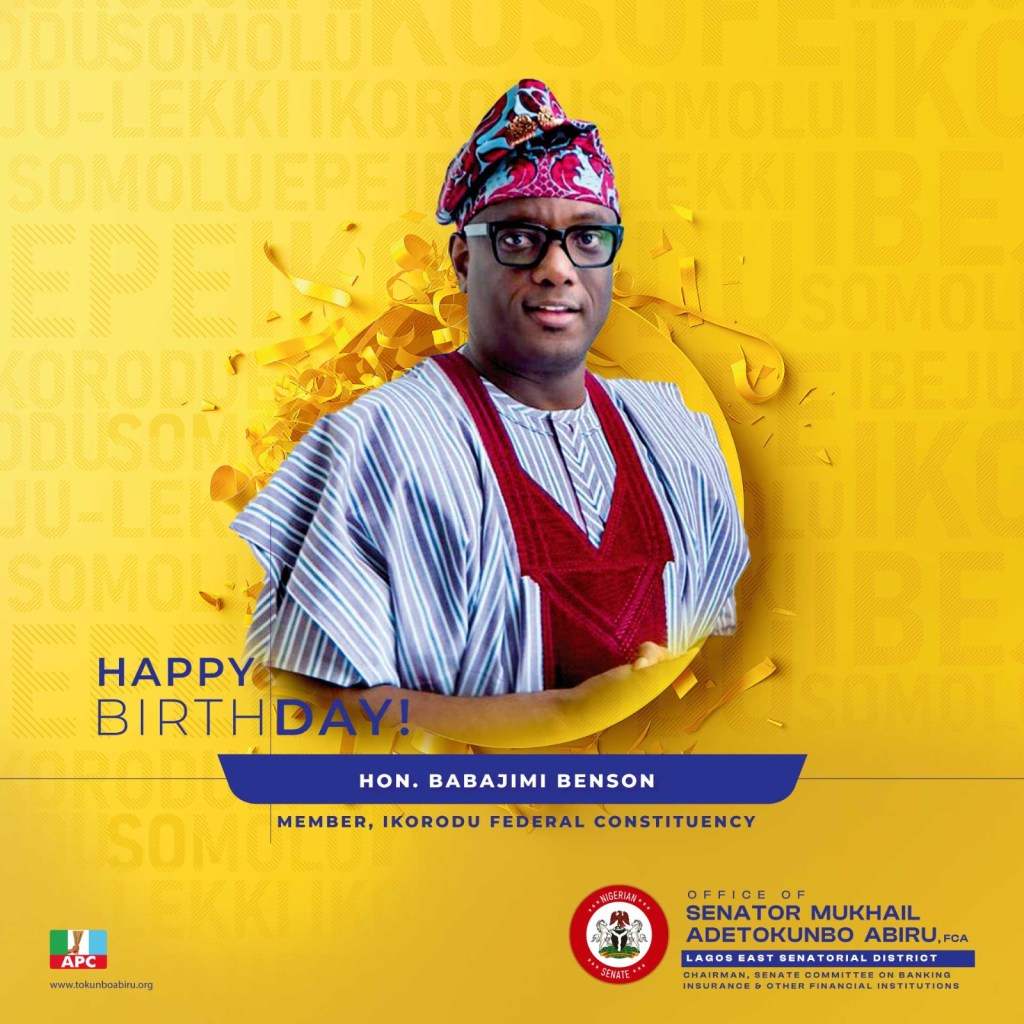 On behalf of the good people of the Lagos East Senatorial District, I congratulate my dear brother, Hon. Babajimi Adegoke Benson, Honourable member of the Federal House of Representatives (Ikorodu Federal Republic), on his birthday.