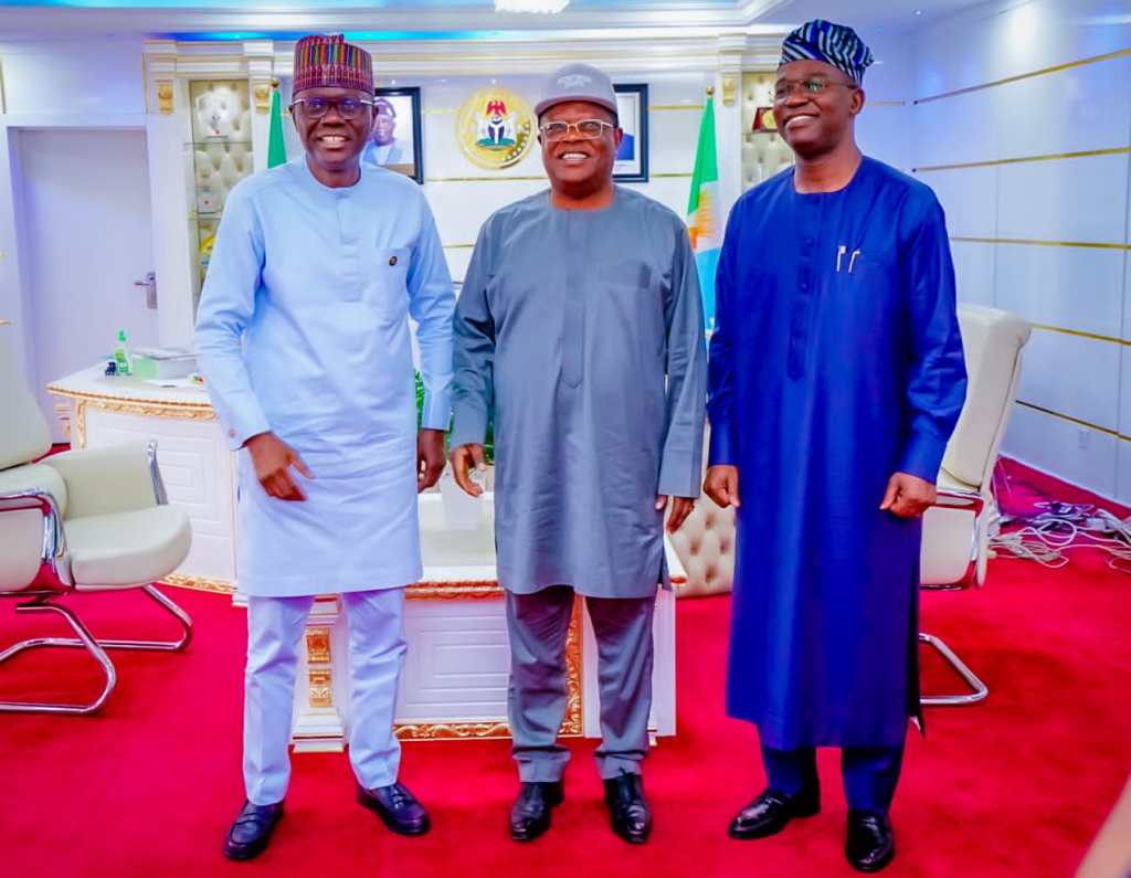 The Lagos State Governor, Mr. Babajide Olusola Sanwo-Olu and the Senator representing Lagos East Senatorial District, Senator Mukhail Adetokunbo Abiru, FCA, on Thursday paid a thank you visit to the Honourable Minister of Works, Senator Dave Umahi over the fast pace of work on the 34-Km Ikorodu Itokin Road which is currently being rehabilitated. The road was constructed in 1975 by Messr. Taylor Woodrow, under the regime of General Yakubu Gowon and General Mobolaji Johnson.