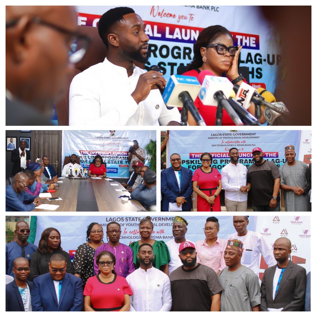 Yesterday, Tuesday 18th June 2024, Hon. Mobolaji Ogunlende, Lagos State Commissioner for Youth and Social Development, announced a groundbreaking initiative for Lagos Youth: the Upskilling Program (LAG-UP). Held in the conference room of the Ministry of Youth, Hon. Ogunlende was flanked by the Permanent Secretary of the Ministry, management staff, and esteemed partners as he unveiled this program, which aims to empower participants aged 18 to 35 with cutting-edge virtual training over a minimum period of three months.