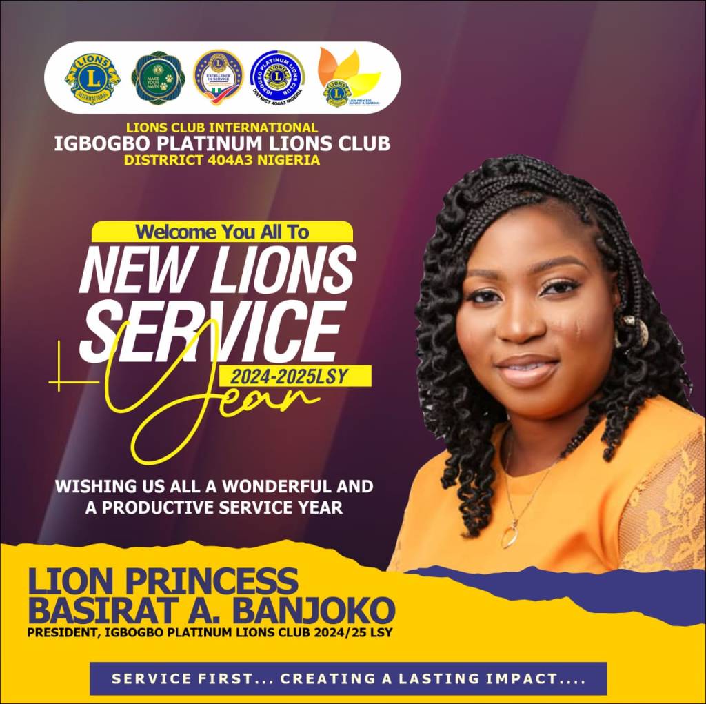 Lion Princess Basirat Adetutu Banjoko has assumed office as the 14th President of Igbogbo Platinum Lions Club, where she will oversee the affairs of the Club for the next one year.