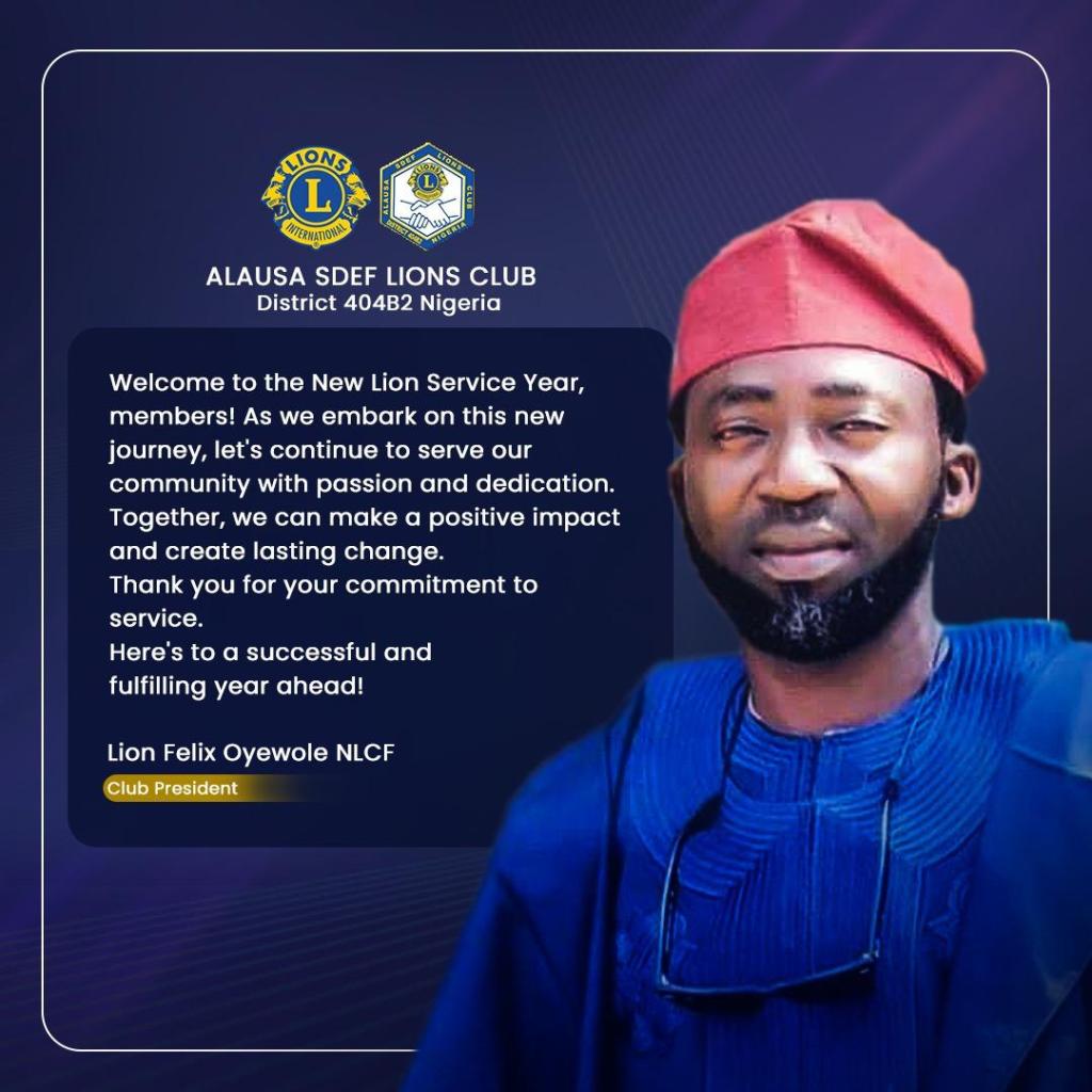 Lion Felix Oluranti Oyewole assumed office as the President of Alausa SDEF, of Lions Club International, effective from July 1st.