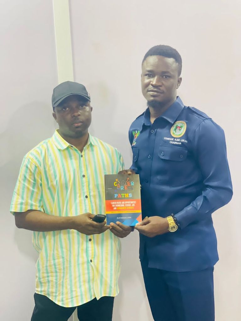 Comr. Alimi Lekan Idris, Chairman of NANS JCC Lagos Axis, presented a copy of the book “Career Paths and Opportunities for Science, Engineering, Art, and Management Students” to Hon. Eniola Opeyemi, Senior Special Assistant to the Governor of Lagos State on Basic and Secondary Education, on behalf of the author, Sheriff Babatunde Lamidi.”