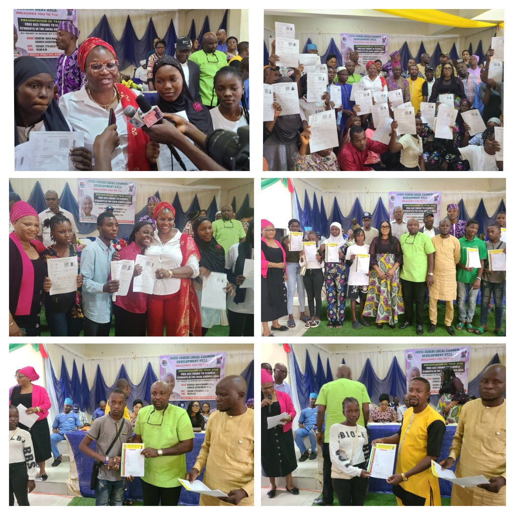 Princess Samiat Abolanle Bada, Mayoress of Ikosi-Isheri LCDA, presented free GCE forms to students in Ikosi-Isheri LCDA. This gesture aims to alleviate the financial burden on parents and guardians during economic hardships.