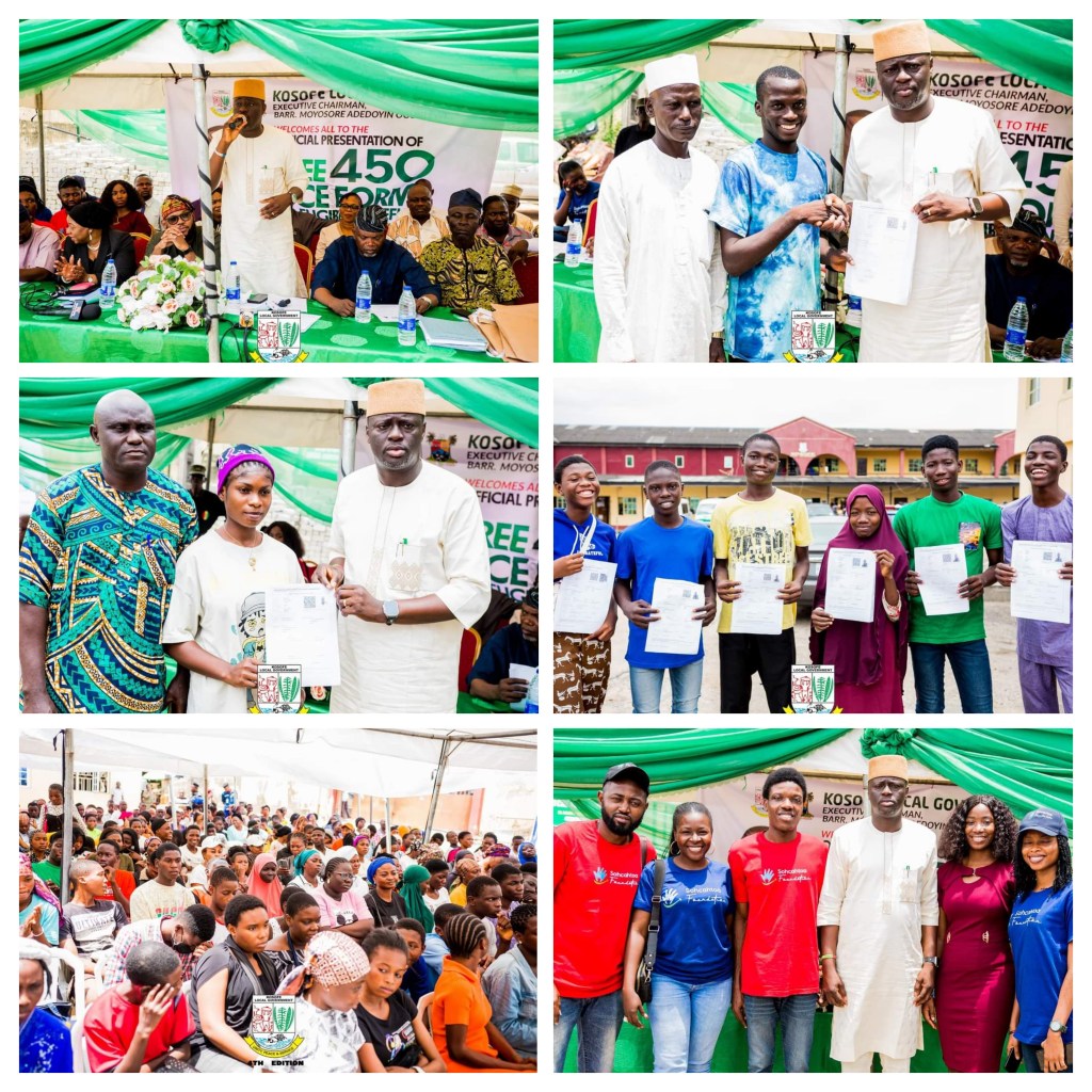 In a bid to promote education and support talented youth, the Executive Chairman of Kosofe Local Government, Barrister Moyosore Ogunlewe, distributed 450 free GCE forms to qualified students in the Local Government.