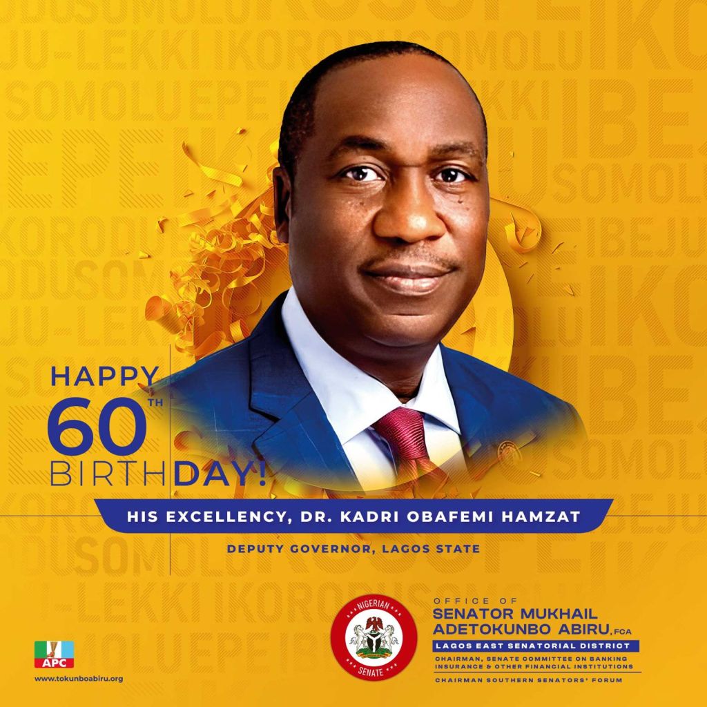 Senator Tokunbo Abiru extended heartfelt Congratulations to Lagos State’s Deputy Governor, Dr. Kadri Obafemi Hamzat, on his 60th birthday. On behalf of the good people of Lagos East Senatorial District, Senator Abiru praised Dr. Hamzat’s life of exemplary service, resilience, and unwavering commitment to Lagos State’s growth and development.