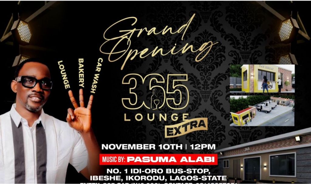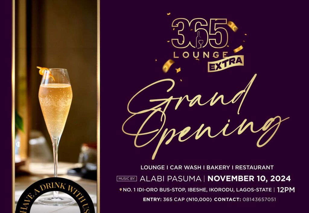 365 Lounge EXTRA, the highly anticipated expansion of the popular 365 Lounge, will be officially launched on Sunday, 10th of November at 1, Idi-Oro Bus-Stop, Ibeshe, Ikorodu.