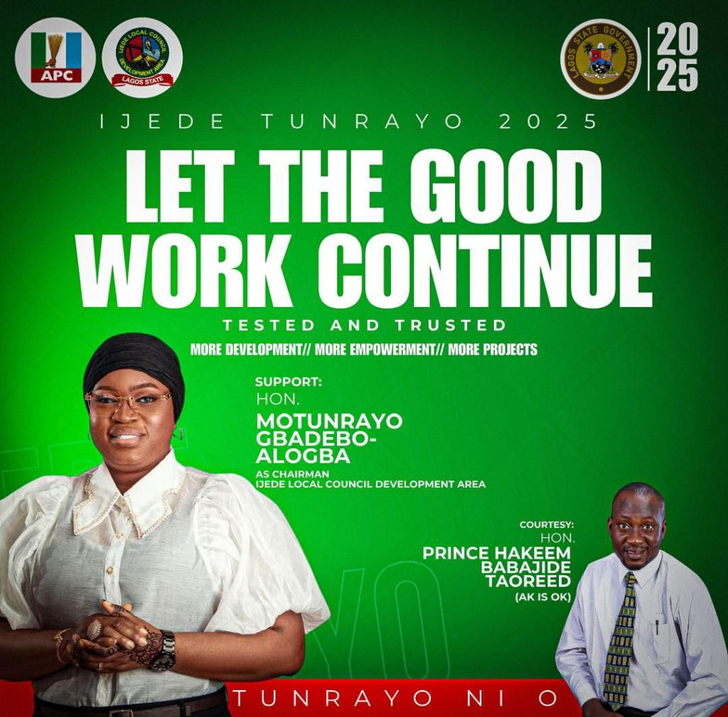 According to Hon. Babajide, supporting Hon. Gbadebo-Alogba’s re-election bid is crucial for the continued development of Ijede community. He stated that her administration has made significant strides in infrastructure development, education, women and youth empowerment, among others.