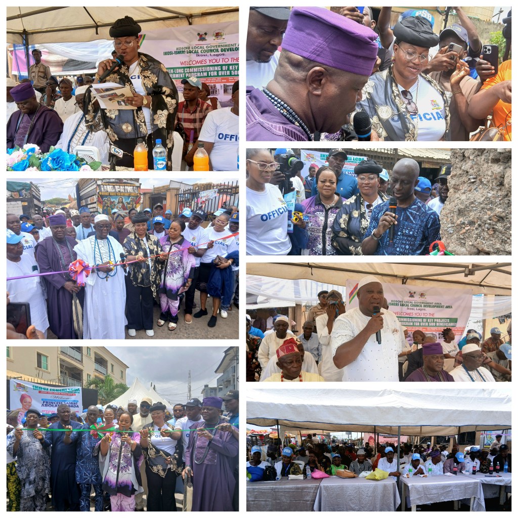 As part of the week-long project commissioning exercise in Ikosi-Isheri Local Council Development Area, Princess Samiat Bada on Day 3 delivered Onikosi Drive Phase I and II, Atinmo Street, Olabisi Balogun Street, Ogunkoya Street, and Adeyomoye Street, aimed at easing the affairs of residents and boosting the local economy for traders and businesses.