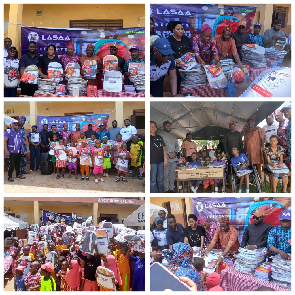 The Lagos State Signage and Advertisement Agency (LASAA) in collaboration with the Omadada Foundation, distributed durable school bags and educational materials to pupils of Methodist Primary School in Igbogbo-Baiyeku LCDA, today 30th of April.