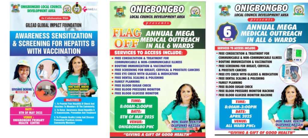 The Onigbongbo Local Council Development Area (LCDA) is set to embark on its annual mega medical outreach, a testament to the council chairperson, Barr. Rekiyah Olufunke Hassan’s dedication to improving lives in the community. The outreach program, in collaboration with Global Impact Foundation, will provide essential healthcare services to residents across all six wards in Onigbongbo LCDA.