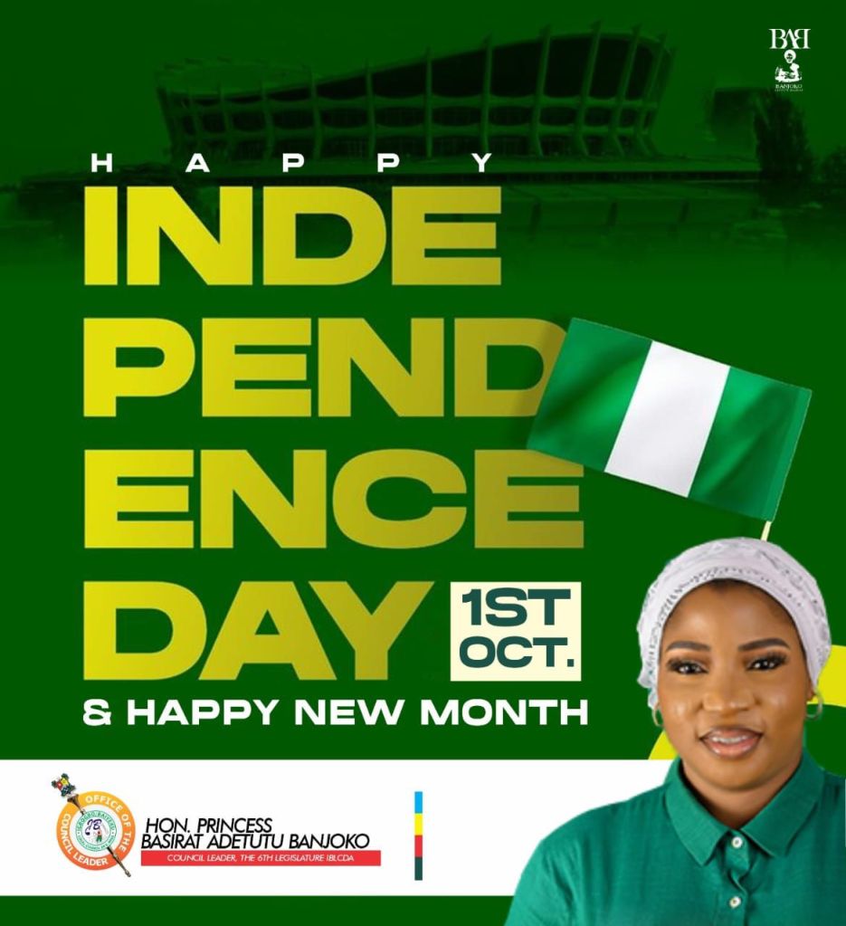 As Nigeria celebrates its 65th Independence Day, Princess Basirat Adetutu Banjoko, Council Leader of Igbogbo Baiyeku Local Council Development Area (LCDA), has extended her heartfelt wishes to the good people of Ward C1, the entire residents of Igbogbo Baiyeku LCDA, Lagos State, and Nigerians at large.
