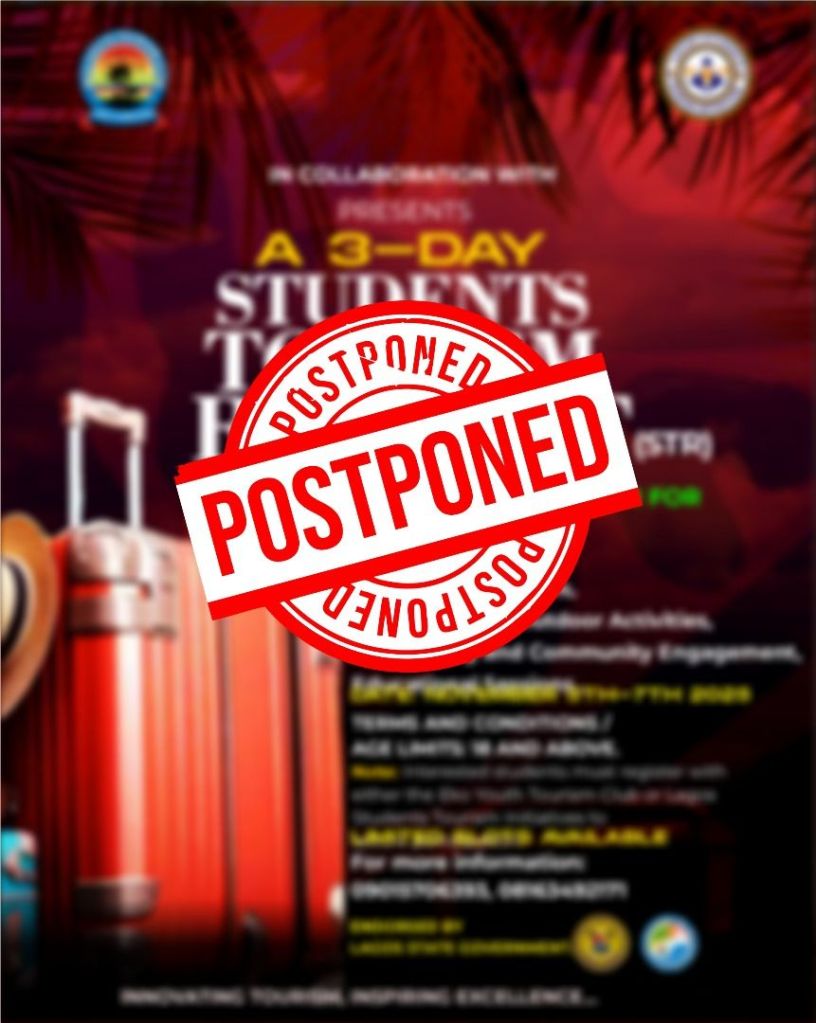 The Eko Youth Tourism Club, in collaboration with the Lagos Students Tourism Initiatives (LSTI), has announced the postponement of the much-anticipated Students Tourism Retreat (STR) earlier scheduled to take place from November 5 to 7, 2025.