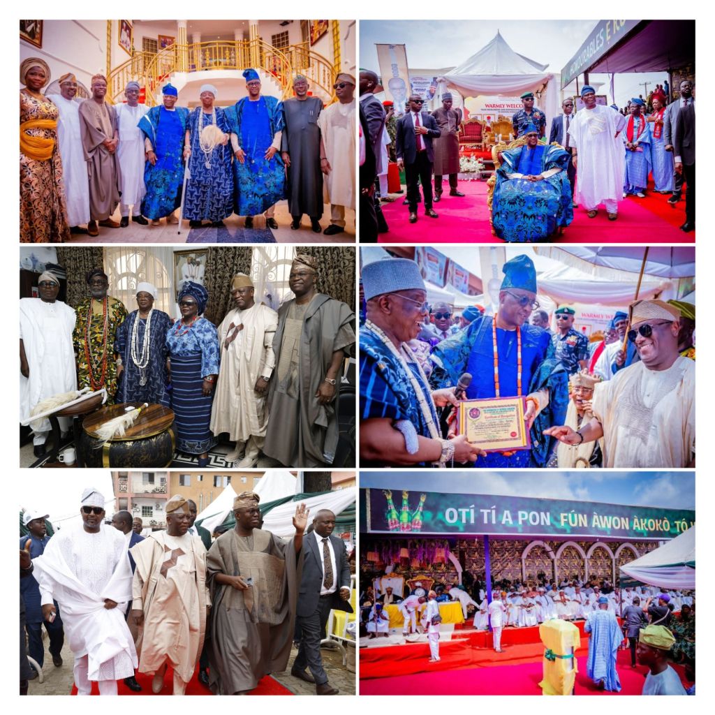 In a ceremony that blended tradition with contemporary governance, Rt. Hon. Tajudeen Abbas, Speaker of the House of Representatives, was installed as the Otunba Adekílúmọ of Ikorodu Kingdom, while Distinguished Senator Abdulaziz Abubakar Yari received the title of Baba Isale of Ikorodu Kingdom. The Chief Accountant-General of the Federation, Mr. Ogunjimi Shamseldeen was also conferred with an Otunba chieftaincy title.