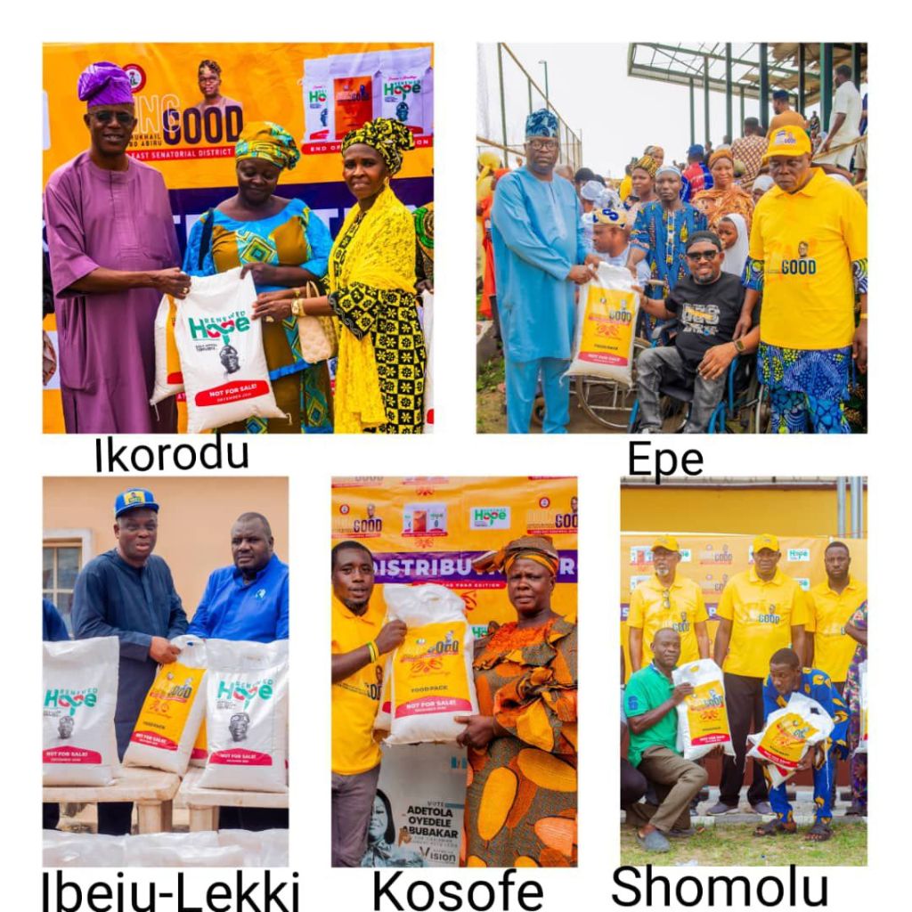 Each food pack, branded with the Renewed Hope of President Bola Ahmed Tinubu, GCFR, and Senator Abiru’s #DoingGood, underscored the alignment of the Senator with the far-reaching policy direction of President Tinubu’s agenda on food security, social protection and inclusive welfare.