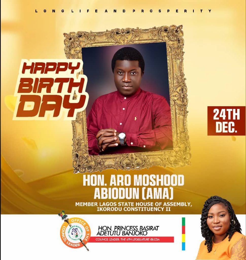 Princess Basirat Adetutu Banjoko, the Leader of the Legislative Arm, Igbogbo-Baiyeku Local Council Development Area (LCDA), has extended warm birthday felicitations to Hon. Aro Moshood Abiodun, commending his outstanding service to the people.