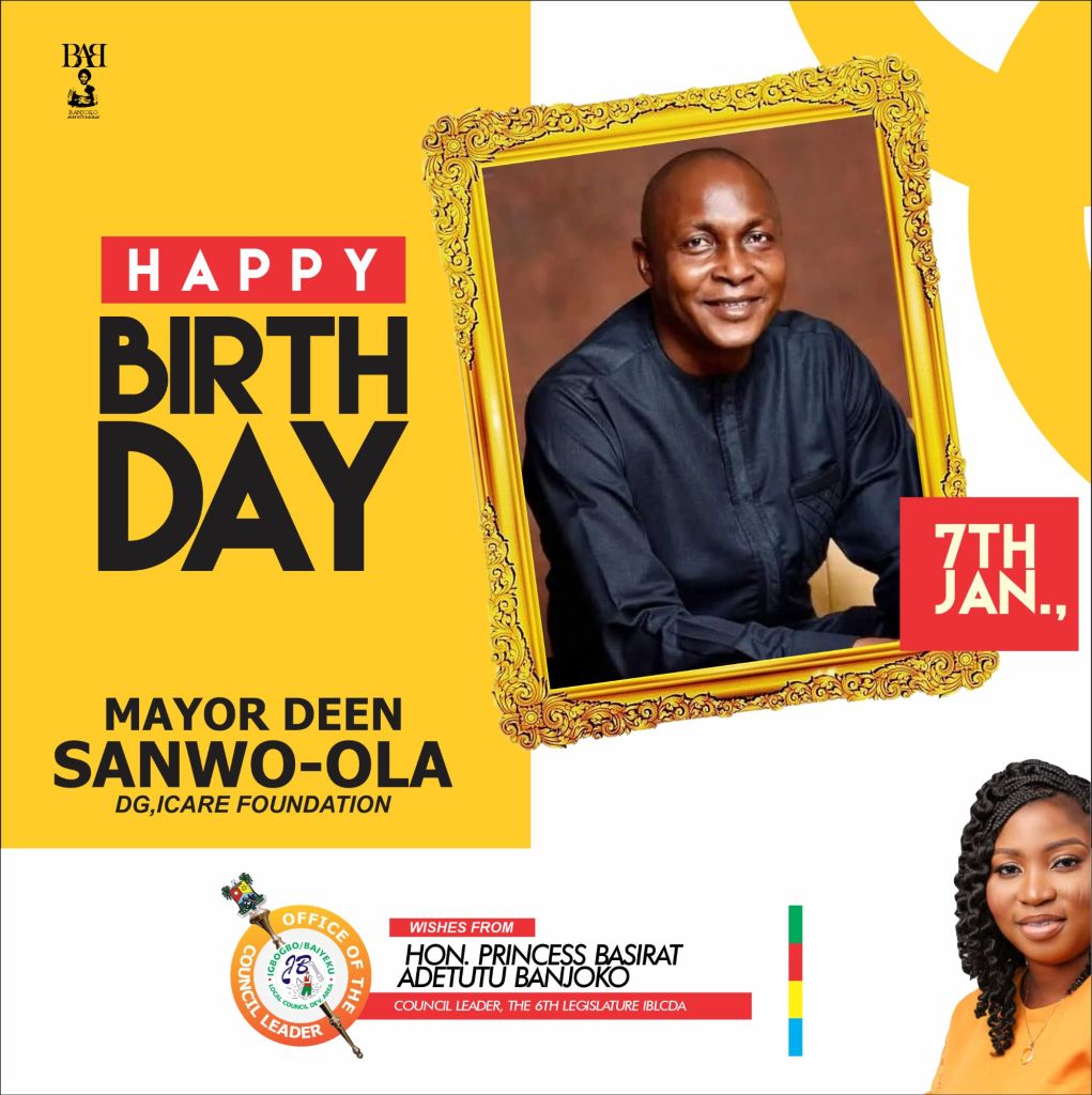The Council Leader of Igbogbo-Baiyeku Local Council Development Area (LCDA), Princess Basirat Adetutu Banjoko, has extended her warm congratulations to Mayor Deen Sanwoola, Director General of iCare Foundation, on the occasion of his birthday celebration.