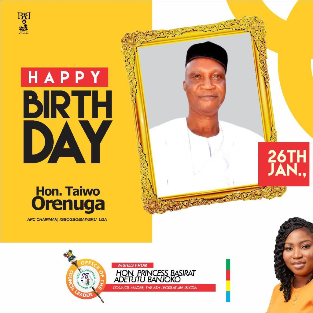 Princess Basirat Adetutu Banjoko, Council Leader Igbogbo-Baiyeku LCDA has extended heartfelt congratulations to the All Progressives Congress (APC) Chairman of Igbogbo-Baiyeku Local Council Development Area (LCDA), Hon. Taiwo Orenuga, on the occasion of his birthday, describing him as a fatherly figure, dependable leader, and a guiding light within the party.