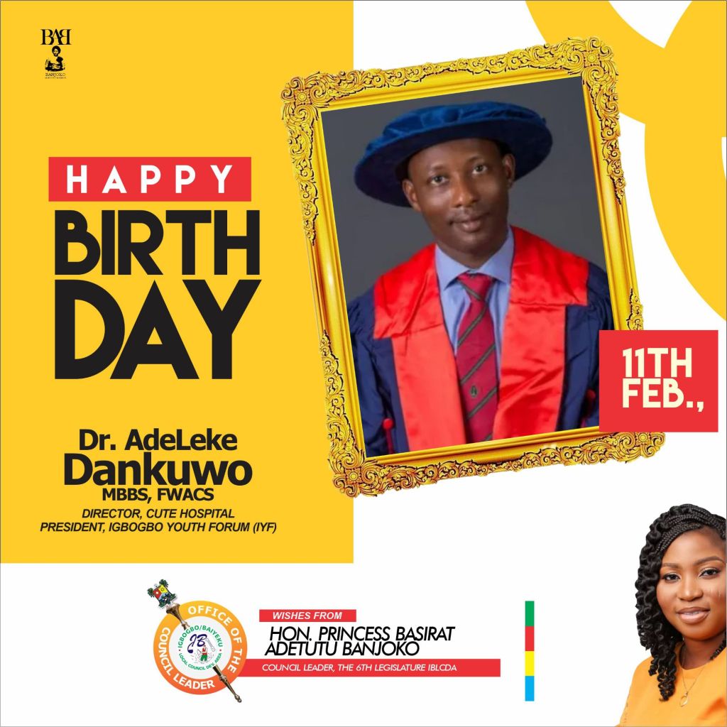 Princess Basirat Adetutu Banjoko, Leader of the Igbogbo-Baiyeku Legislative Arm, has congratulated Dr. Adeleke Dankuwo, President of the Igbogbo Youth Forum (IYF), on the occasion of his birthday.