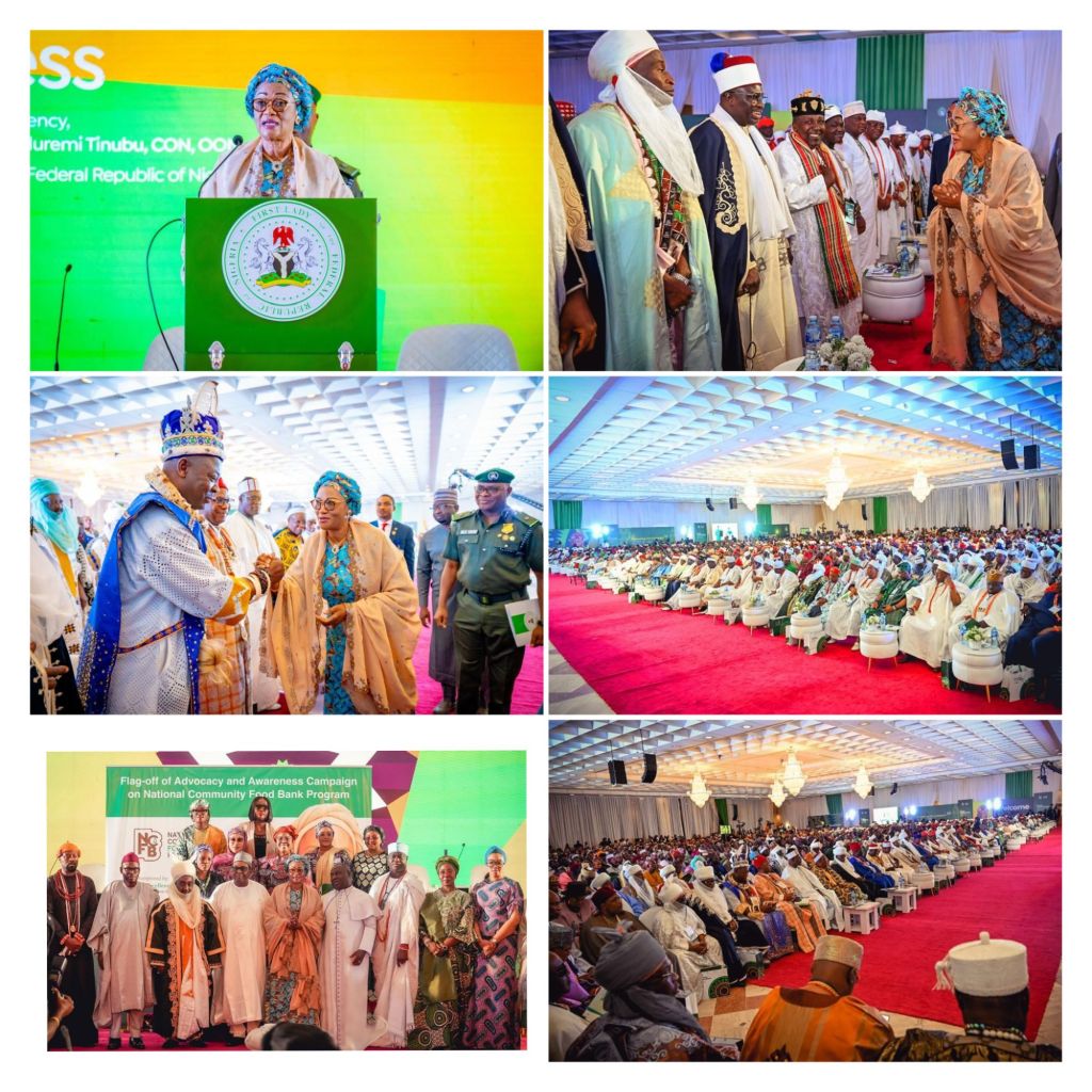 In a bid to tackle malnutrition among infants across Nigeria, the First Lady, Senator Oluremi Tinubu, has officially flagged off the National Advocacy and Awareness Campaign for the National Community Food Bank Program. The launch took place during the 1st National Traditional and Religious Leaders Summit held in Abuja.