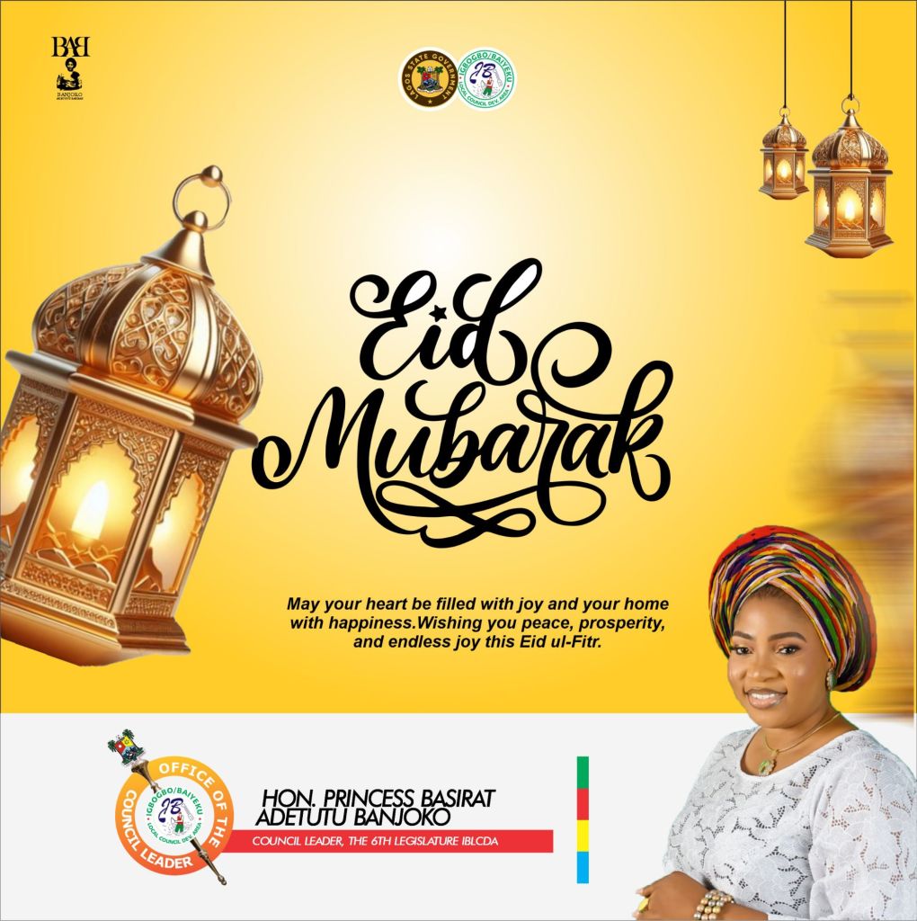 As Muslims across Nigeria and around the world mark the joyous occasion of Eid-el-Fitr, Princess Basirat Adetutu Banjoko, Council Leader of the 6th Legislature, Igbogbo-Baiyeku LCDA, has extended warm greetings to the Muslim faithful.