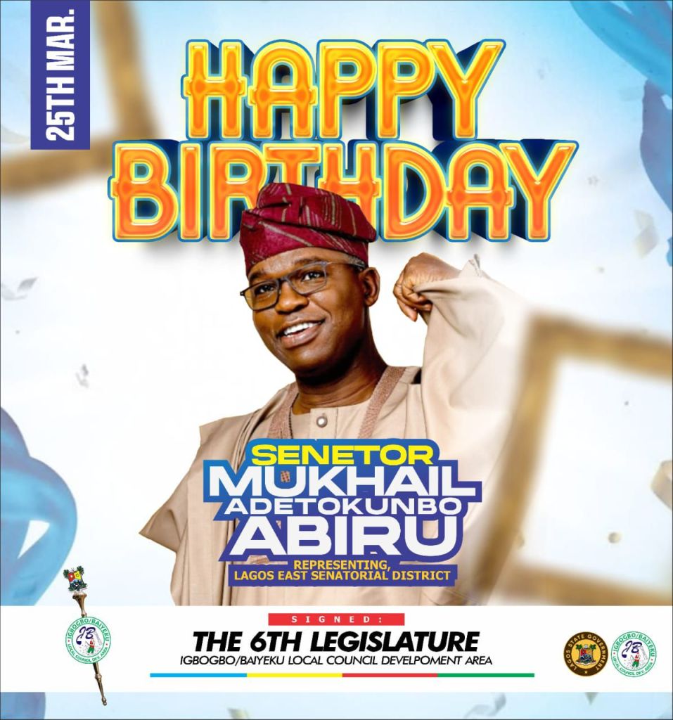The Legislative Arm of Igbogbo-Baiyeku LCDA has extended heartfelt congratulations to Senator Mukhail Adetokunbo Abiru, representing Lagos East Senatorial District, on the occasion of his birthday.