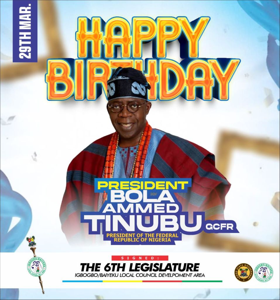 The Legislative Arm of Igbogbo-Baiyeku LCDA has extended warm congratulations to President Bola Ahmed Tinubu on the occasion of his birthday, commending his leadership and commitment to national development.
