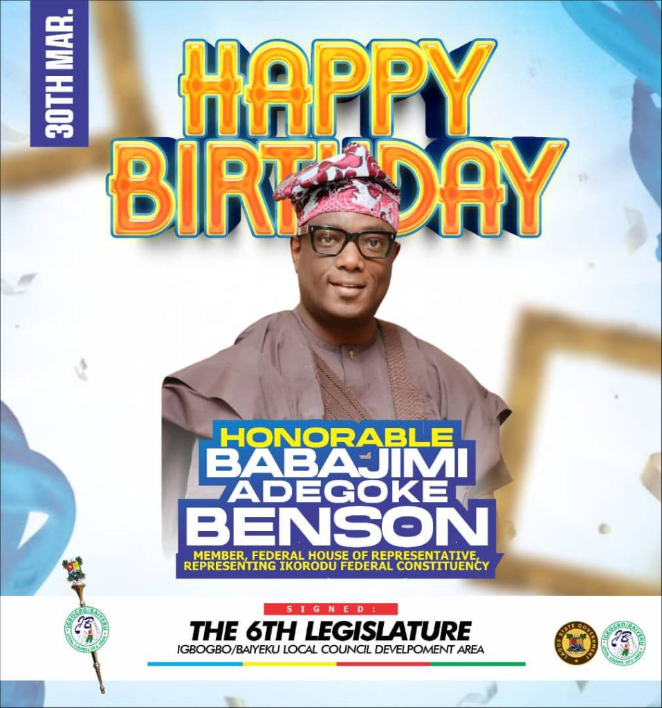 The legislative arm of Igbogbo-Baiyeku Local Council Development Area (LCDA) has extended heartfelt congratulations to Hon. Babajimi Adegoke Benson, Member of the House of Representatives, on the occasion of his birthday.