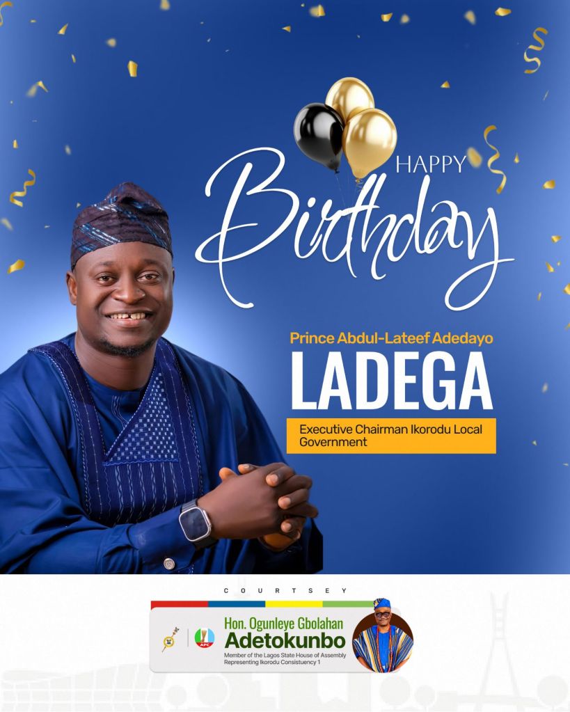 Hon. Ogunleye Gbolahan Adetokunbo, Member representing Ikorodu Constituency I at the Lagos State House of Assembly, has congratulated Prince Abdul-Lateef Adedayo Ladega, Executive Chairman of Ikorodu Local Government, on the occasion of his birthday.