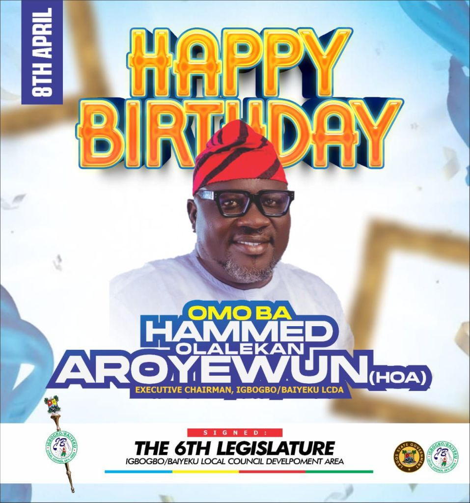 The 6th Legislative Arm of the Igbogbo-Baiyeku Local Council Development Area (LCDA) has showered encomiums on the Executive Chairman, Omo’ba Hammed Olalekan Aroyewun (HOA), on his Birthday.