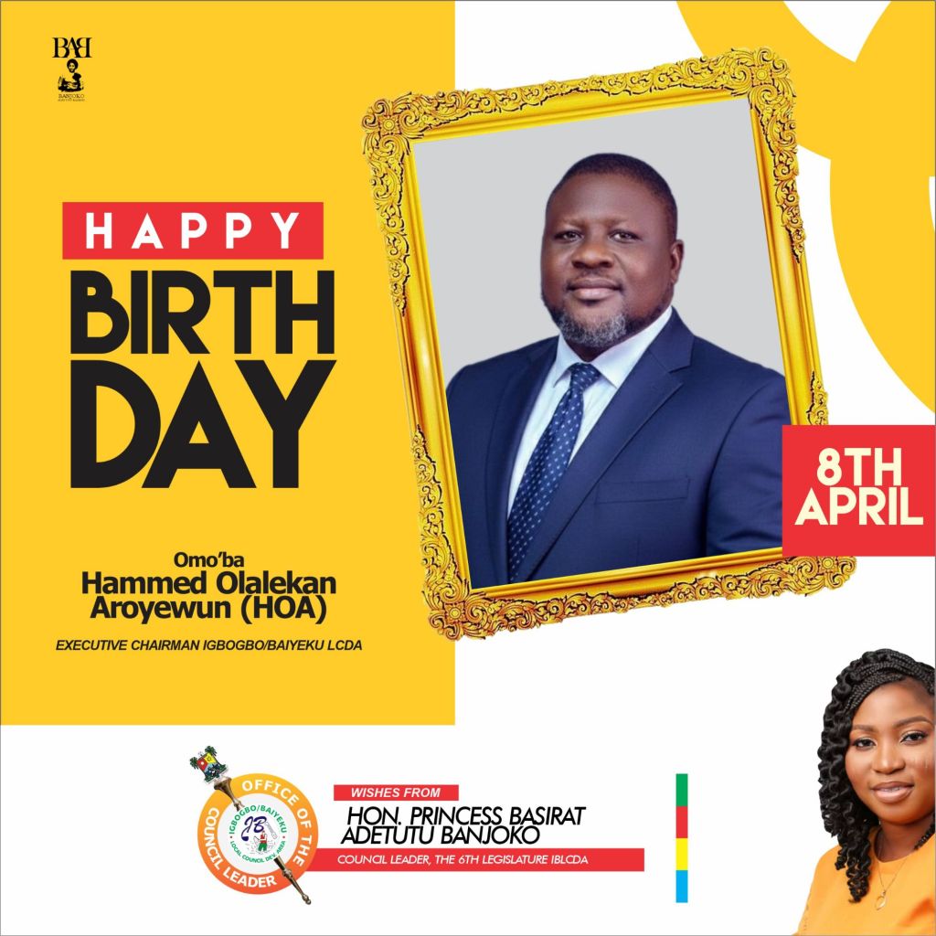 The Council Leader of Igbogbo-Baiyeku Local Council Development Area (LCDA), Princess Basirat Adetutu Banjoko, has extended warm birthday felicitations to Omo’ba Hammed Olalekan Aroyewun, commending his contributions to community development.
