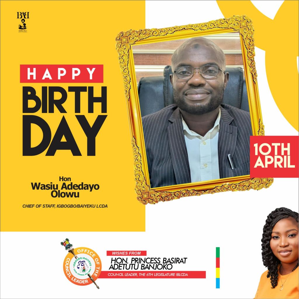 Princess Basirat Adetutu Banjoko, Council Leader Igbogbo-Baiyeku LCDA has extended warm congratulations to Hon. Wasiu Olowu on the occasion of his birthday.