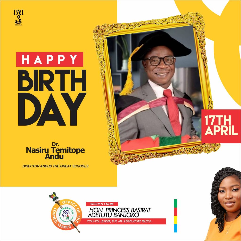 The Council Leader of the Igbogbo-Baiyeku Local Council Development Area (LCDA), Princess Basirat Adetutu Banjoko, has extended her warmest birthday felicitations to Dr. Nasiru Temitope Andu, the Director of Andus the Great Schools.